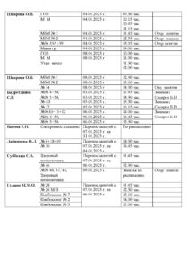 • Расписание