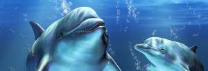 Two dolphins happily swimming in the ocean. Digital illustration